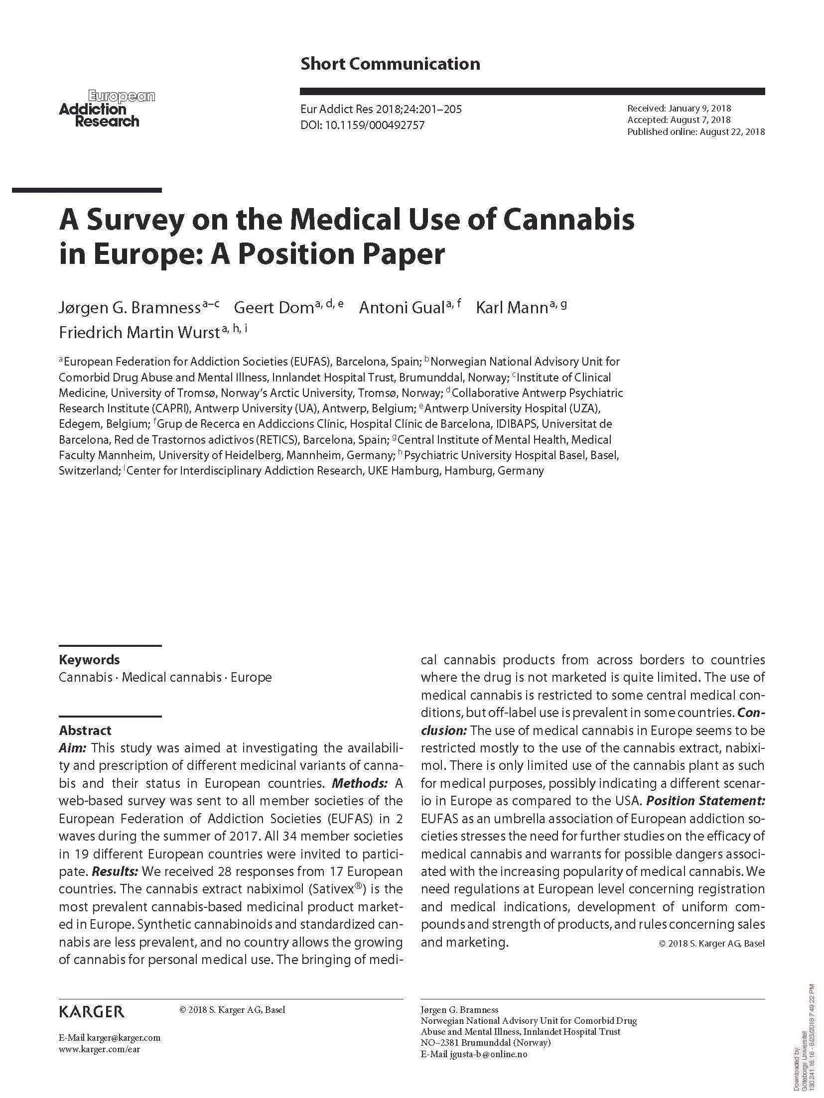 An online survey was carried out in 2017 on national level legislation, guidelines, and research into medical cannabis use.